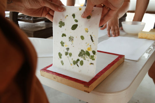 Laissez libre cours à votre créativité pendant cet atelier de fabrication de papier en intégrant pétales et empreintes végétales glanés dans